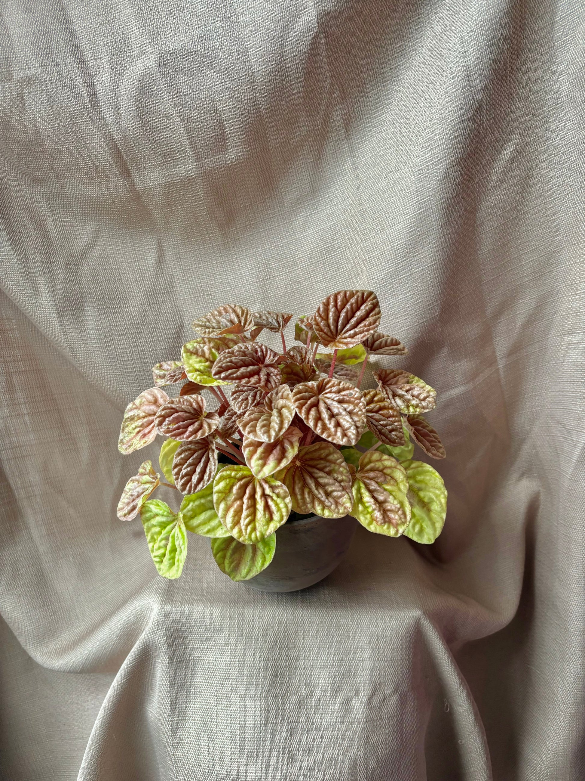 A 5" peperomia planted in a neutral toned 'Basalt Luna' pot. Care card included.